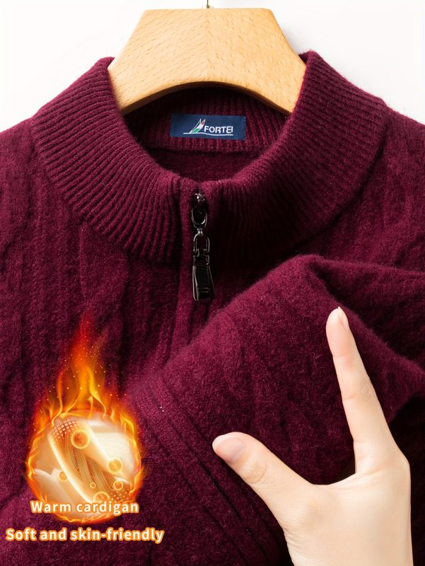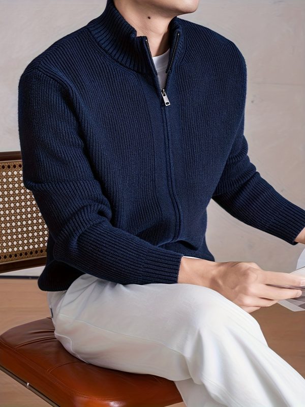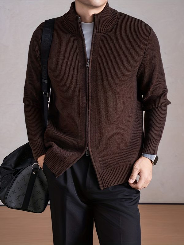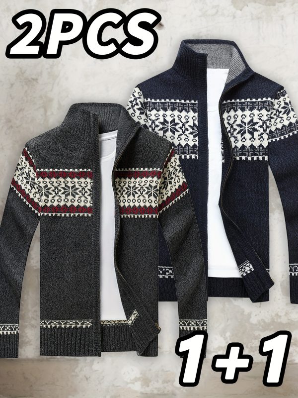 2pcs Men’S Thickened Winter Sweater Cardigan – Full-Zip Front Closure, Stand Collar, Long Sleeve, Geometric Pattern, Casual Style, Warm & Stylish for Fallu002FWinter, Knit