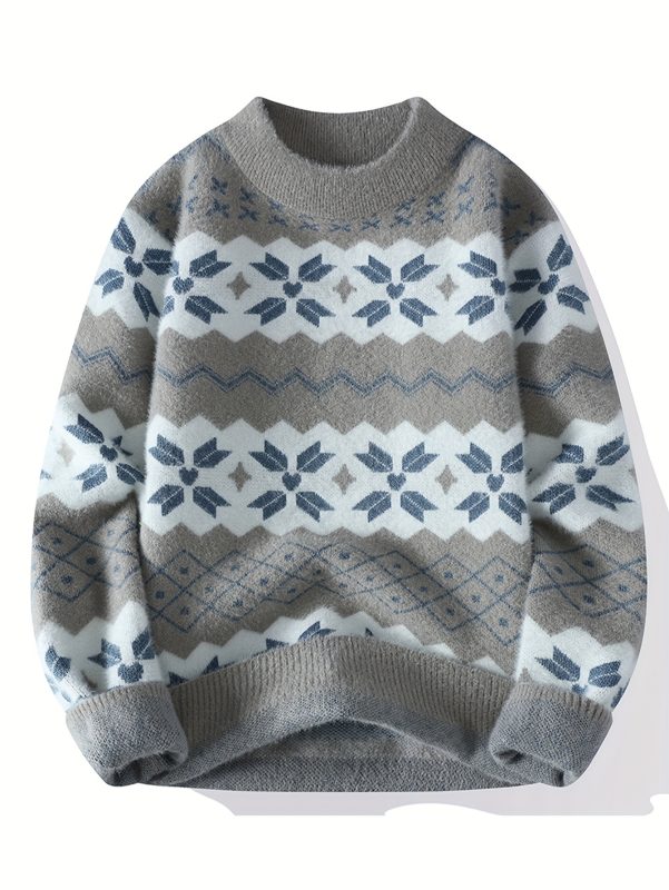 ‘s Heavy-Duty Winter Sweater – Soft Blue & White Geometric Cable- Pullover, Thick Warm Round Neck Long Sleeve Knitwear for Cold Weather, Casual & Formal Wear (Dark Greyu002FBlue) – 2025 New Arrival by Shengmeiguo