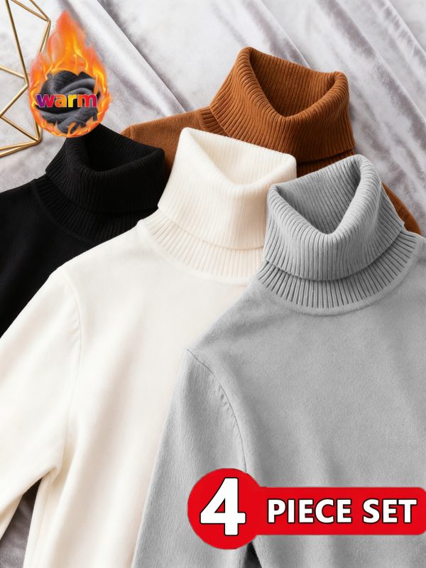 Four-Piece Set of Autumn And Winter Men’S Classic High-Neck Sweaters, Heavyweight High-Neck Sweaters – Winter Warm Sweaters, Blacku002FWhiteu002FGrayu002FCaramel Color, Knit, Soft And Breathable Layering Essential, Suitable For Casual And Formal Wear
