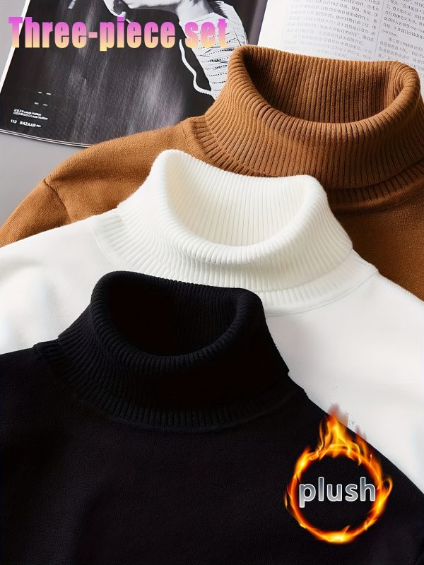 3pcs Men’s Turtleneck Knit Sweaters – Classic Solid Color High Neck Long Sleeve Men’s Autumn Winter Casual Outerwear, Chic Fashion Top, Soft Solid Color Pullover, Versatile Top for Outdoor Casual and Formal Occasions, Fashionable Turtleneck Design