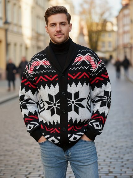 SINBOS Men’S Long Sleeve Cardigan – Soft, Light with Red & Stripes, Button-Up Front, Regular Fit, Casual Style for Fallu002FWinter, Comfortable & Durable, Cardigan Sweater, Winter Clothing, Classic Collar, Durable Construction, Stylish Sweater