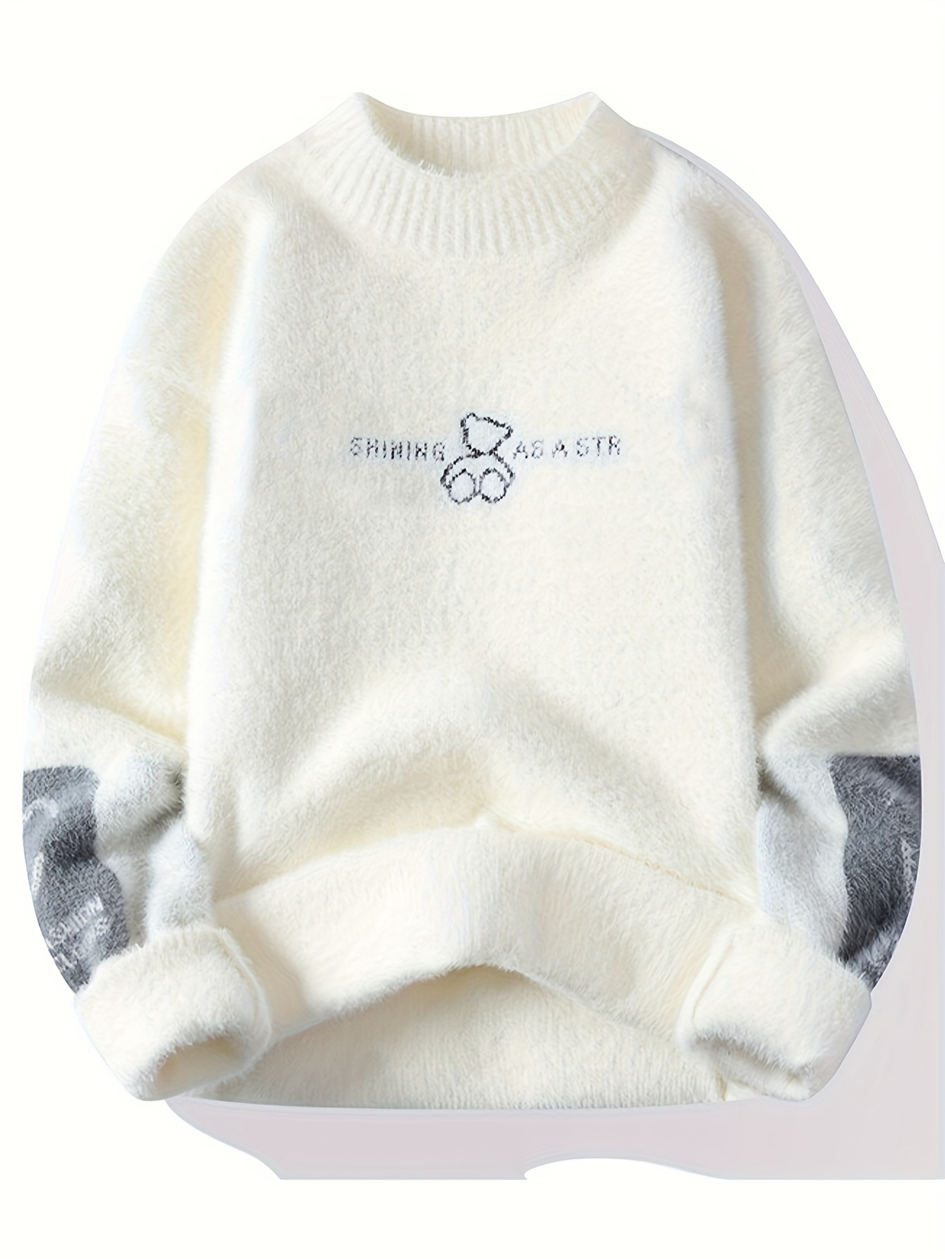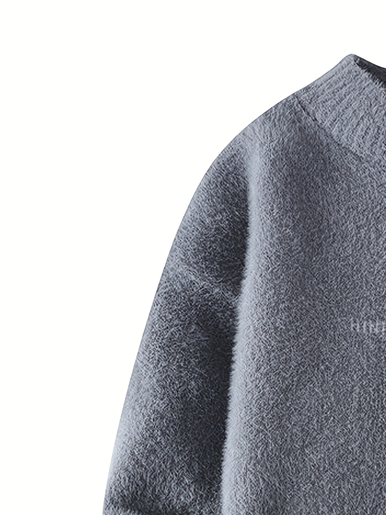Men’S Heavyweight Thickened Sweater – Oversized Round Neck Long Sleeve Winter Warmth, Soft Plush Texture Solid Color Casual Coat for Fall & Winter, Knit