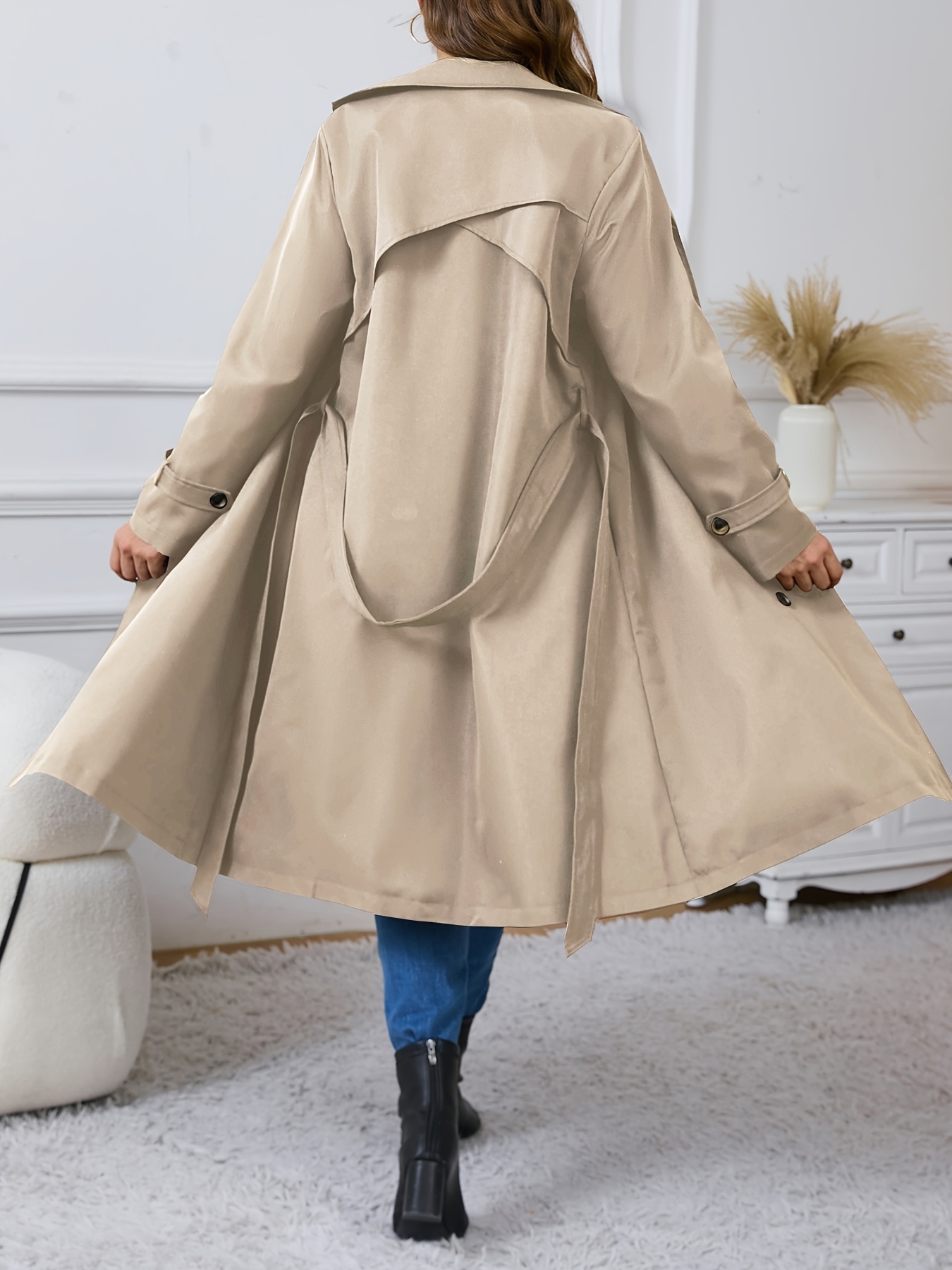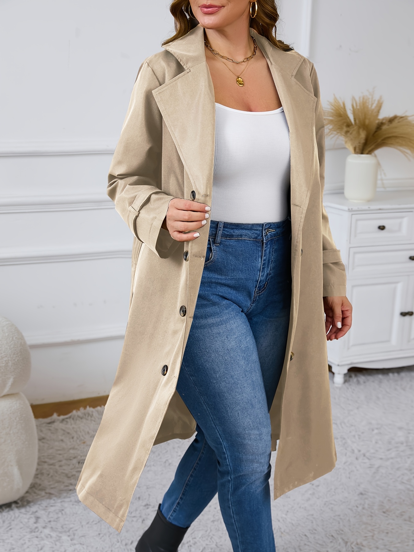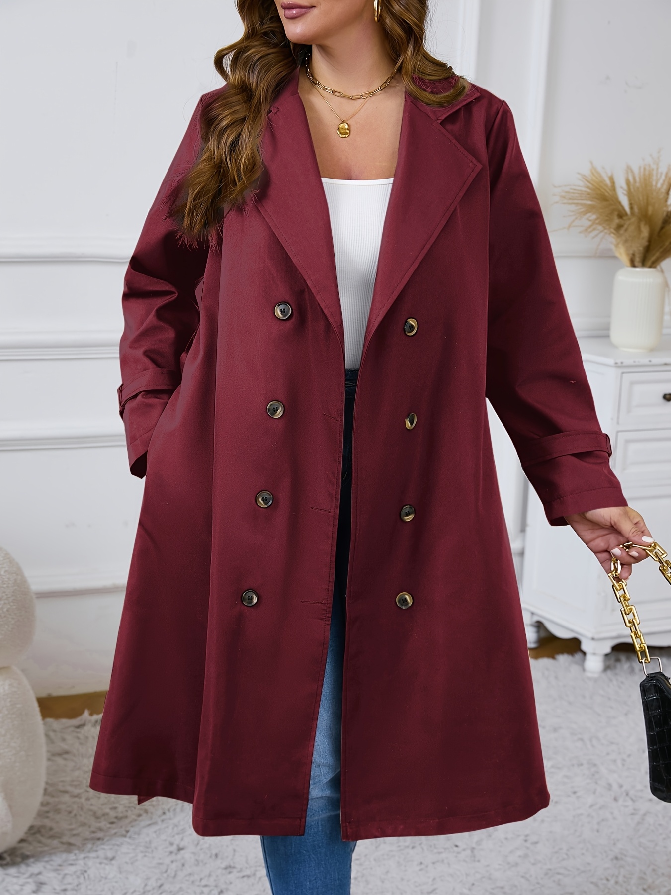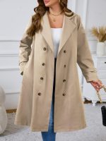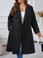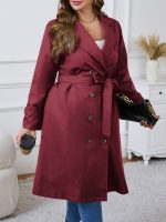 Home Curve Coats & Jackets Plus Size – Plus Size – Plus Size – Plus Size Women’S Double-Breasted Trench Coat – Casual Long Sleeve Windbreaker with Belt, Solid Color, Regular Fit, Double Button Front, Long Length, Fallu002FWinter Outerwear, Casual Outerwear | Belted Coat | Structured Design