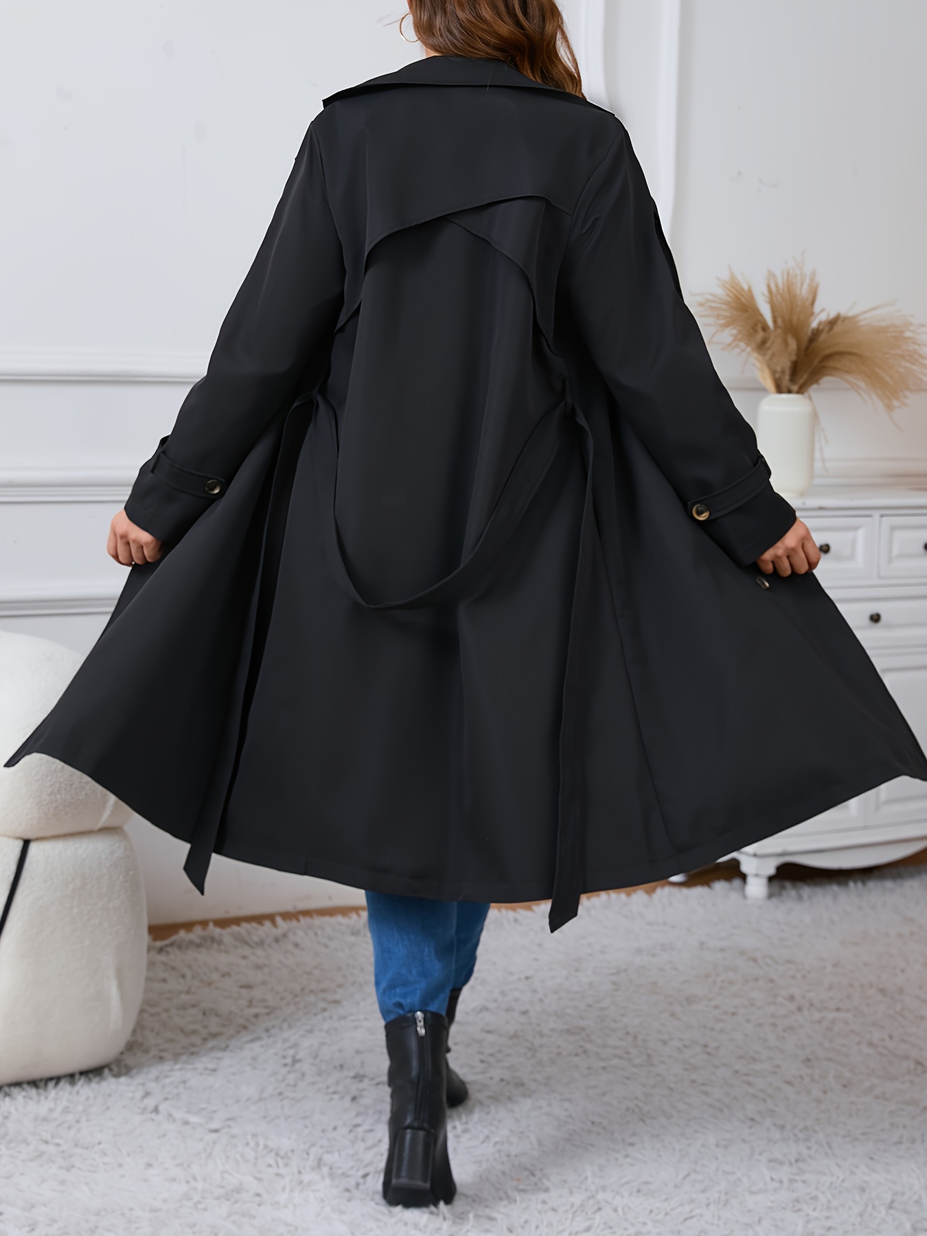 Plus Size – Plus Size – Plus Size – Plus Size Women’S Double-Breasted Trench Coat – Casual Long Sleeve Windbreaker with Belt, Solid Color, Regular Fit, Double Button Front, Long Length, Fallu002FWinter Outerwear, Casual Outerwear | Belted Coat | Structured Design