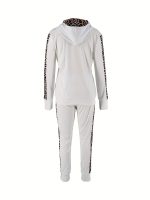 Plus Size – Plus Size – Plus Size – Women’S Plus Size Leopard Print Hooded Sweatshirt & Joggers Set – Casual Long Sleeve Pullover with Drawstring Waist, with Leopard Print, Comfortable Springu002FFall Outfit, Casual Wear|Leopard Print Top|Stretchy Fabri