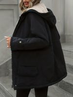 Plus Size, Plus Size Women’s Heavy-Duty Winter Coat with Hood & Full-Zip Closure – Oversized Knee-Length Jacket, Elegant Cold-Weather Outerwear for Fallu002FWinter, Hand Washable (Black) – Warm Parka for Large Frame
