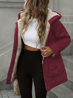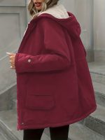 Women’s Plus Size Christmas Coat – Elegant Double-Breasted Hooded Fleece-Style Polyester Coat with Ribbed Cuffs & Hem, Machine Washable Winter Outerwear for Holiday Parties & Cold Weather