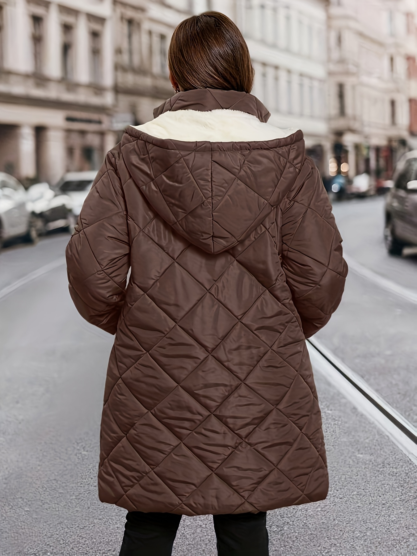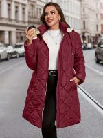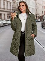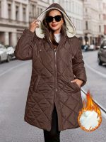 Plus Size – Plus Size – Plus Size Women’S Elegant Plaid Hooded Coat – Oversized Mid-Length Winter Coat with Drawstring Hood, & Checkered Pattern, Long Sleeves, and Pockets, Perfect for Fall and Winter, Winter Coat