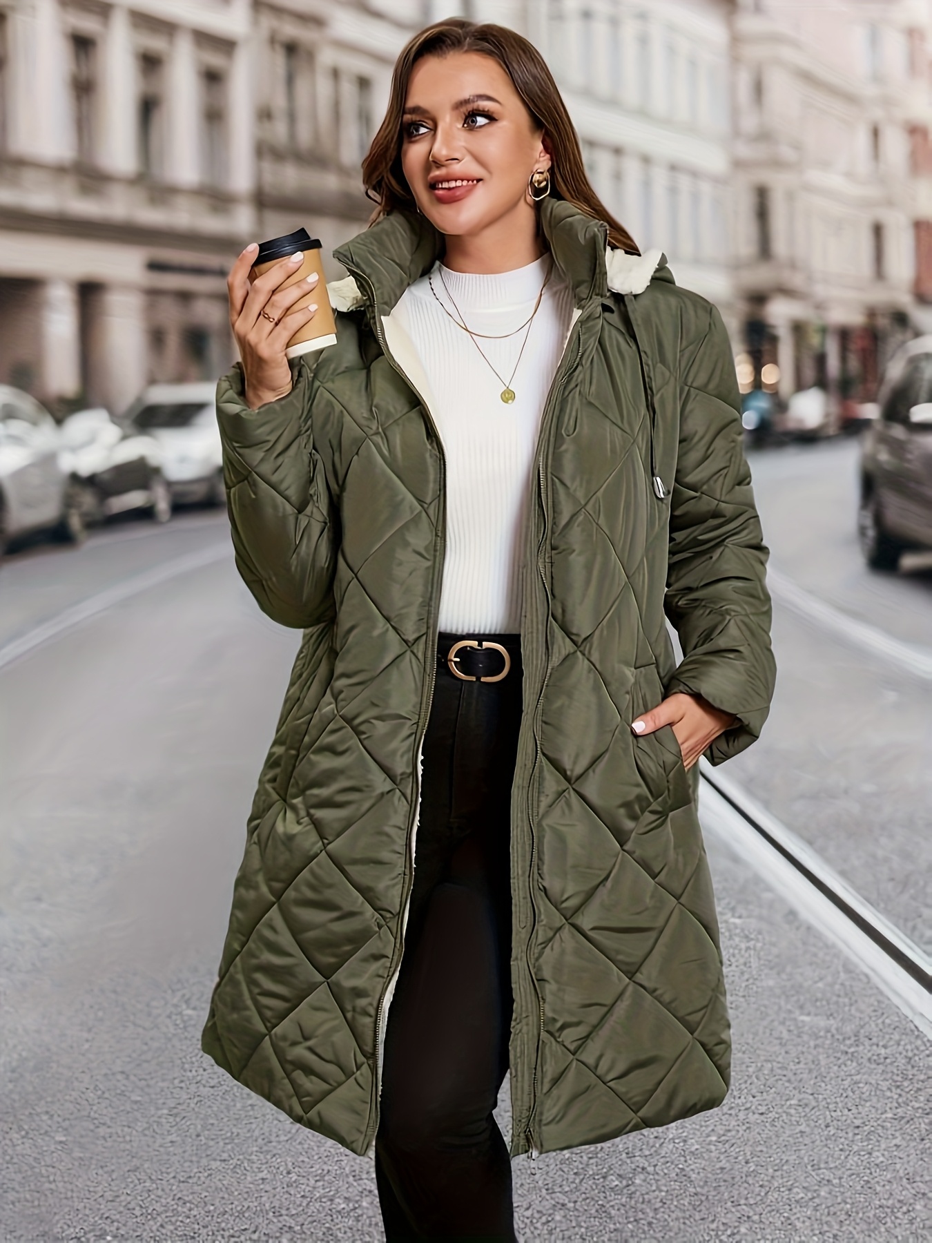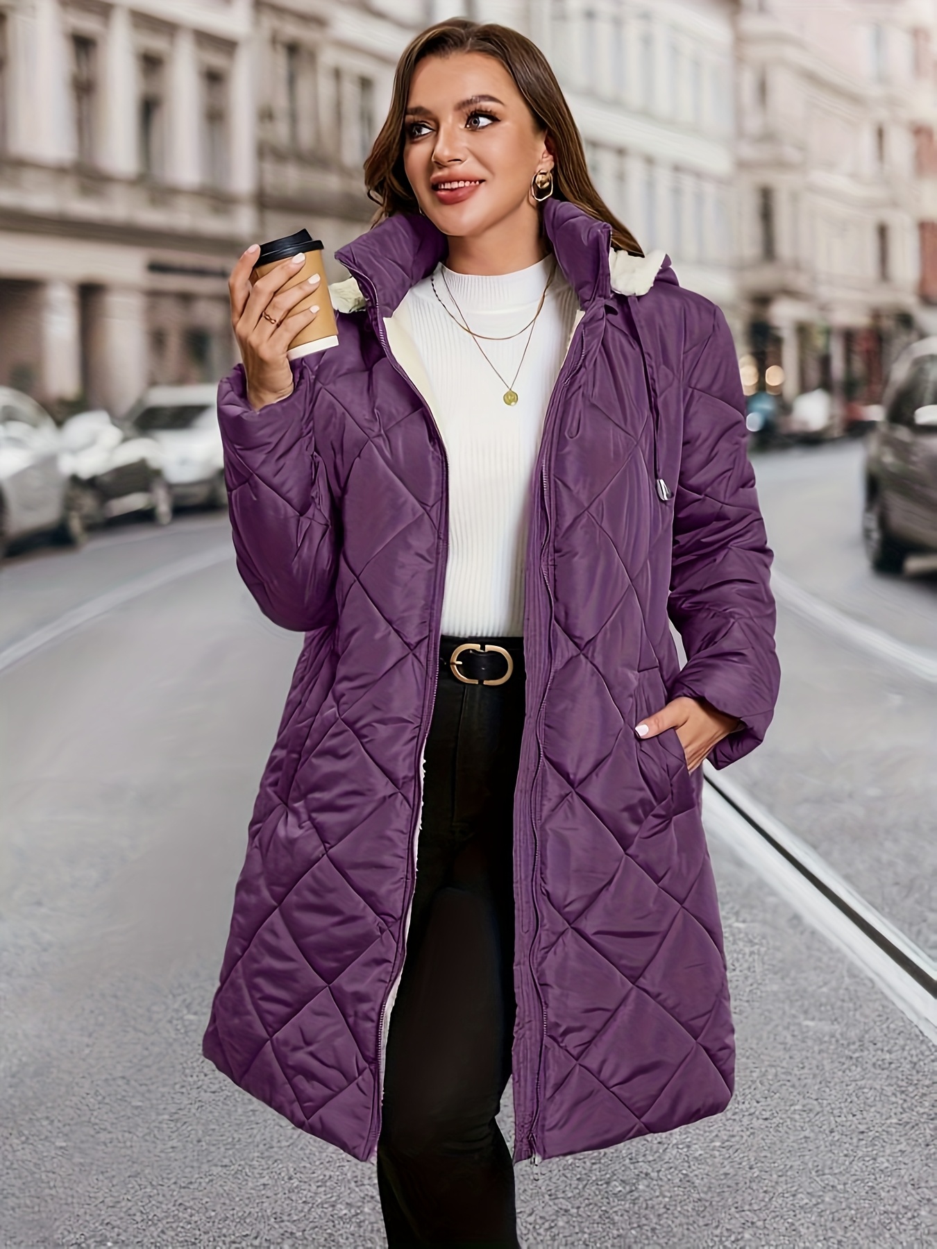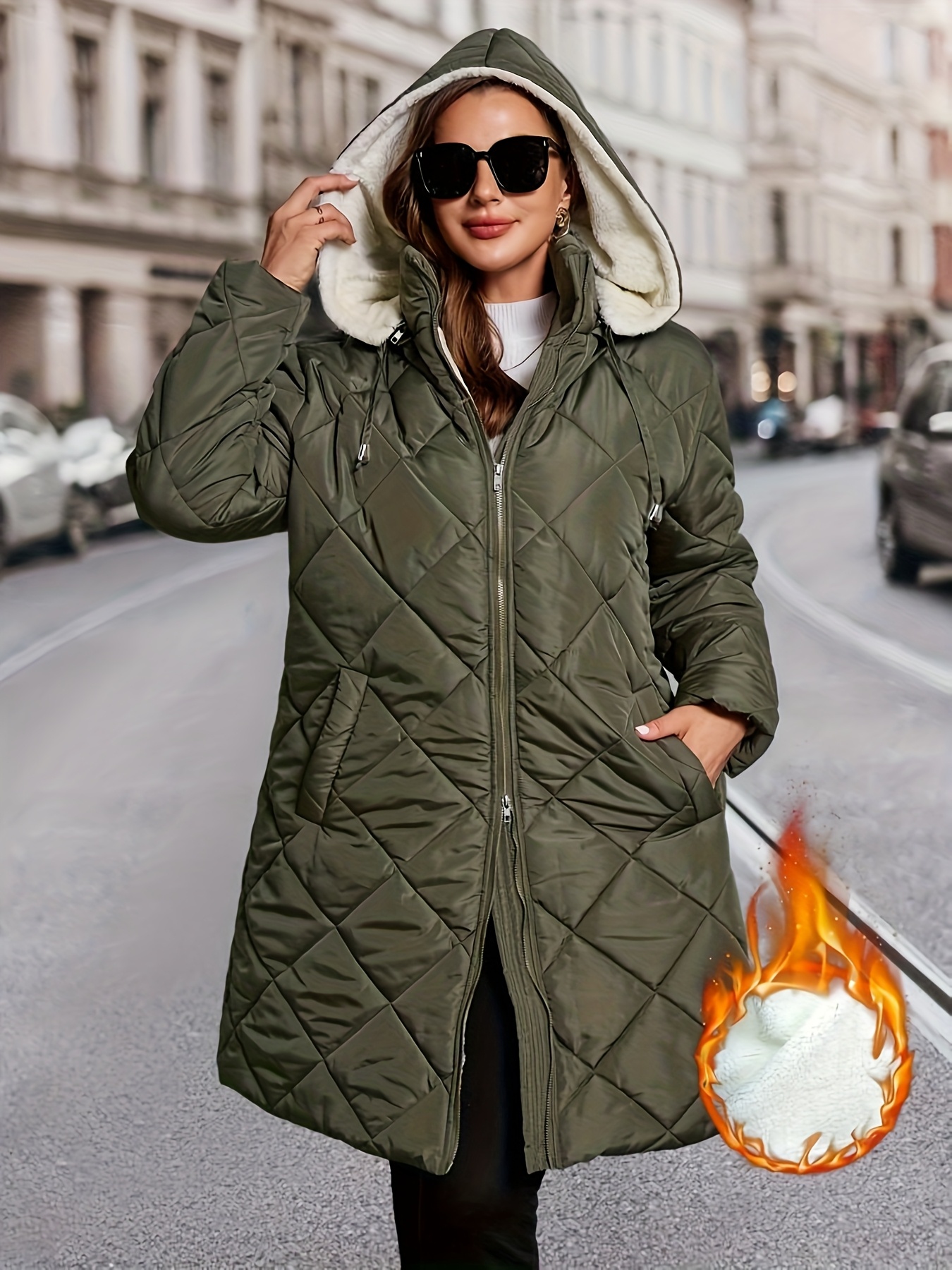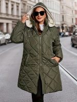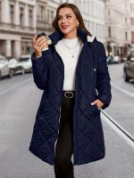 Plus Size – Plus Size – Women’S Elegant Hooded Coat – Long Formal & Everyday Outerwear, Zipper Closure, All-Season Cold Weather Jacket for Office, Parties, Travel – Women’S Outerwear, Party Attire, Durable Fabric, Office Wear, Classic Design