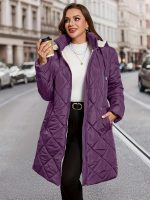 Plus Size, 2025 New Fashion Purple Oversized Winter Coat for Women, Korean Style Sweet Post-Apocalyptic Loose Fit Youthful -Lined Thickened Outerwear