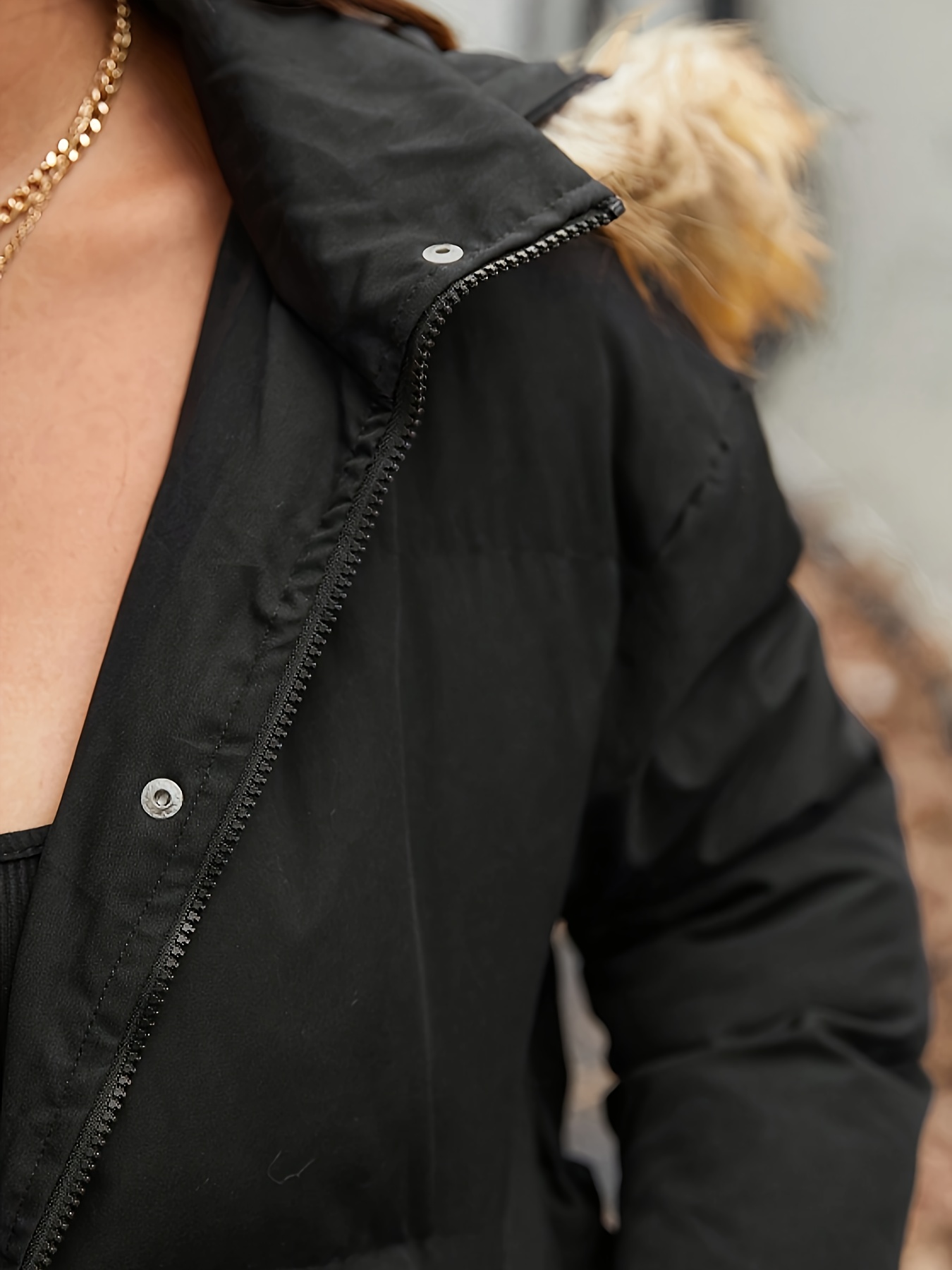 Plus Size, Plus Size Women’s Heavy-Duty Winter Coat with Hood & Full-Zip Closure – Oversized Knee-Length Jacket, Elegant Cold-Weather Outerwear for Fallu002FWinter, Hand Washable (Black) – Warm Parka for Large Frame