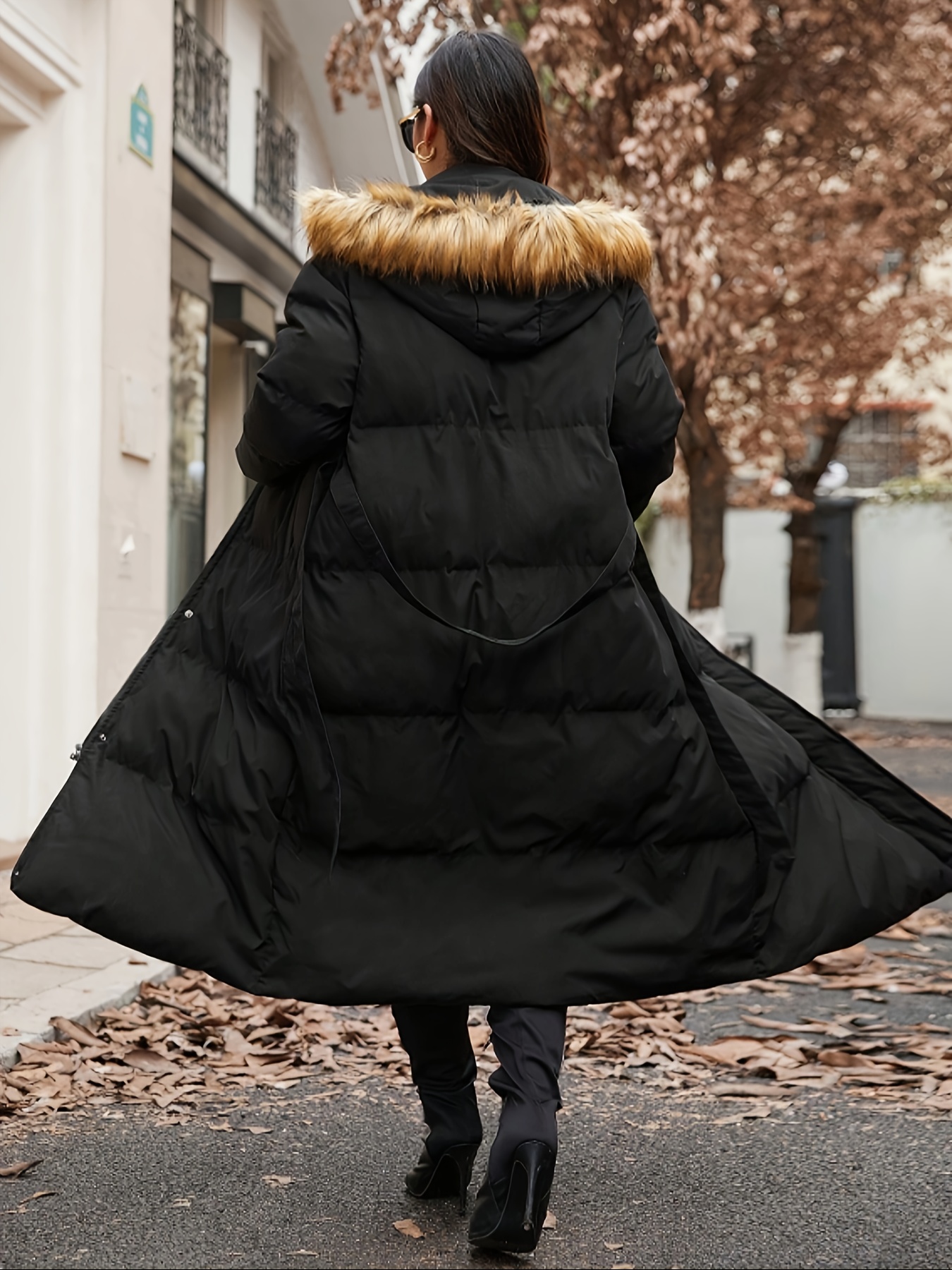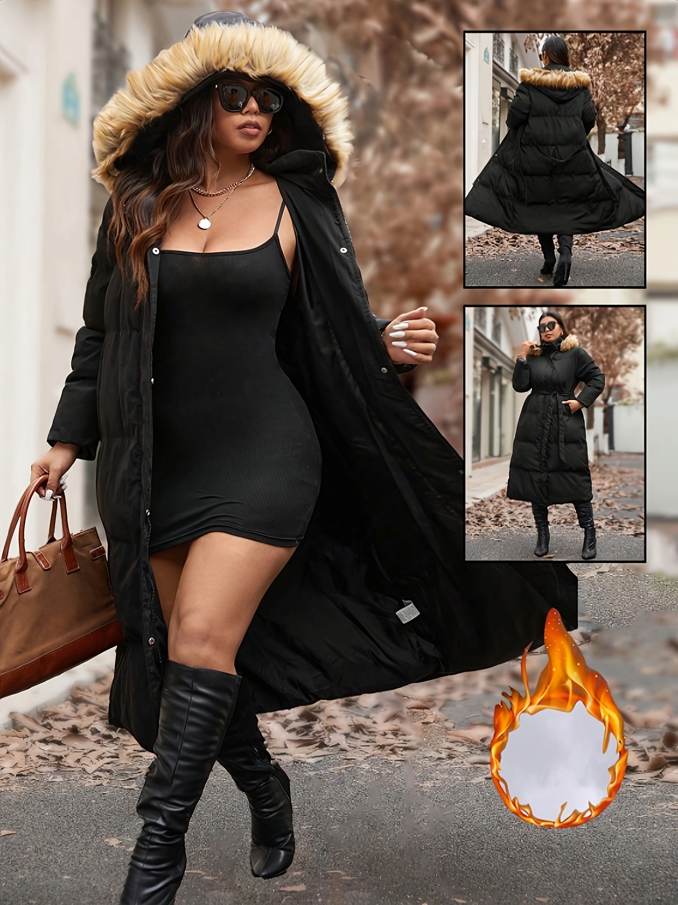 Plus Size – Plus Size – Women’S Elegant Hooded Coat – Long Formal & Everyday Outerwear, Zipper Closure, All-Season Cold Weather Jacket for Office, Parties, Travel – Women’S Outerwear, Party Attire, Durable Fabric, Office Wear, Classic Design