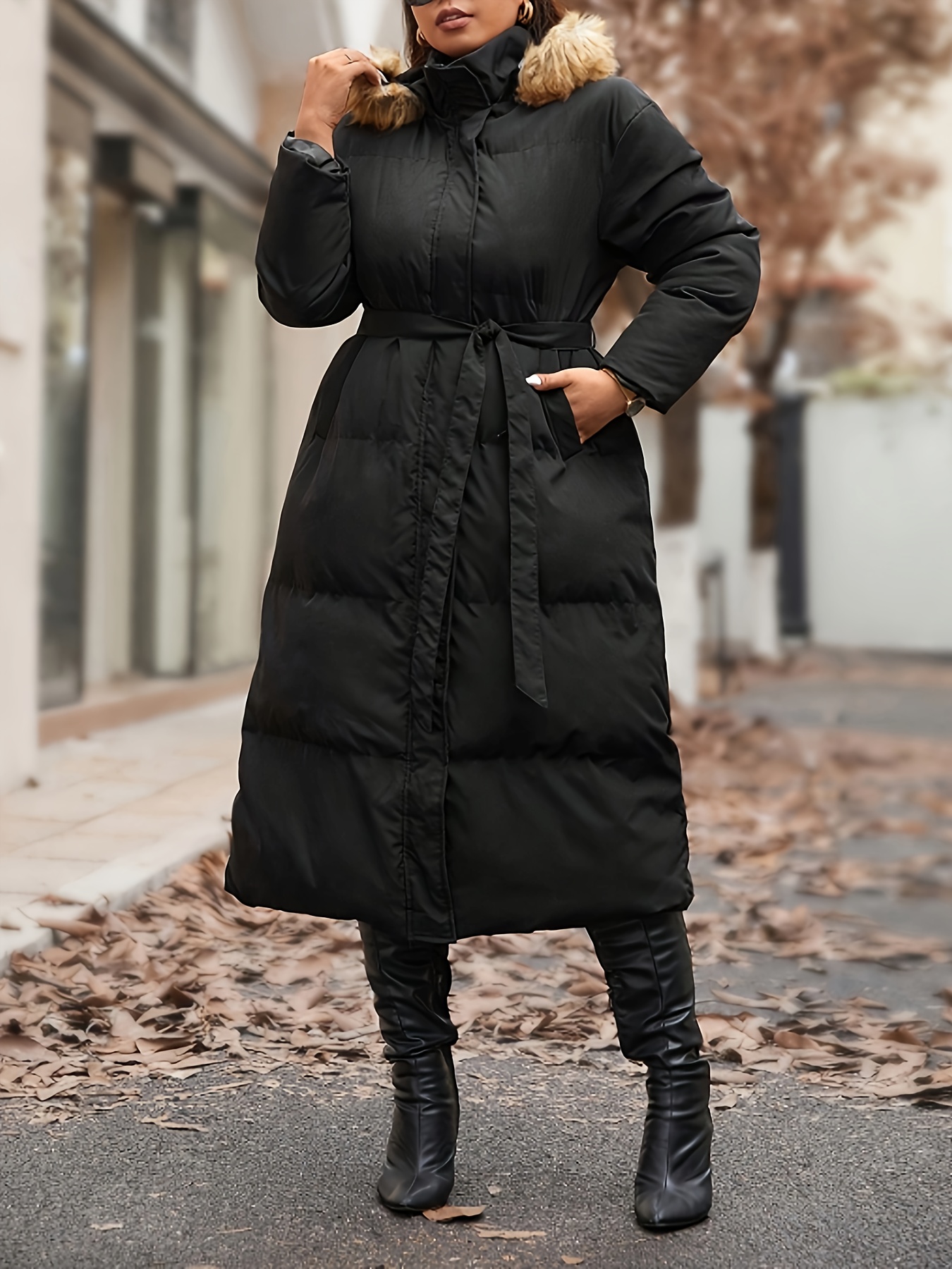 Plus Size, Plus Size Women’s Waist-Cinching Tie-Up Over-Knee Long Coat